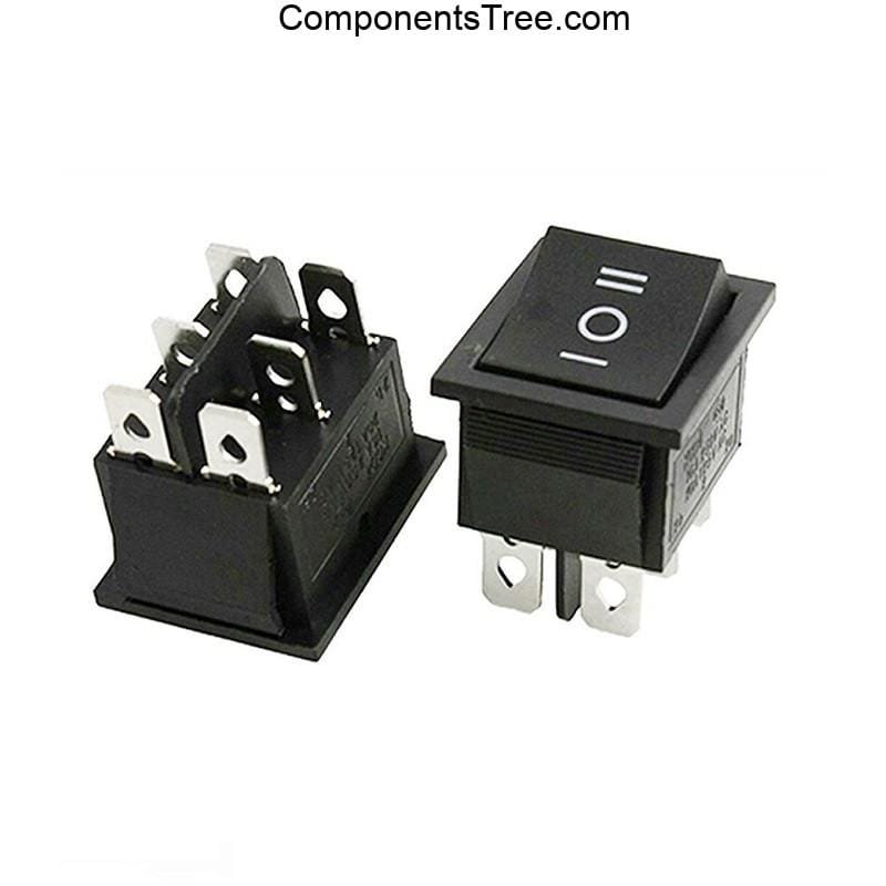 The 16A 250V DPDT ON-OFF-ON Rocker Switch is the simplest and easiest power control switch for your project. It comes with tabs on the top and bottom which secure it onto an enclosure without the need for any screws. On and Off positions are clearly marked which helps users identify the current switch position during usage.