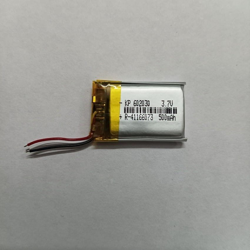 Compact and lightweight 3.7V 500mAh Lithium-Polymer (Li-Po) rechargeable battery, model KP-602030, designed for reliable performance in small electronic devices and DIY projects.