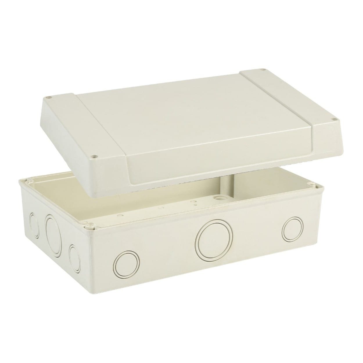300x200x125mm IP65 Waterproof Plastic Enclosure Box, ABS enclosures (box) are typically selected as a low-cost option for indoor or outdoor applications. They are suitable for mildly corrosive environments due to ABS’s good resistance to chemicals but are also sturdy with good insulating properties.