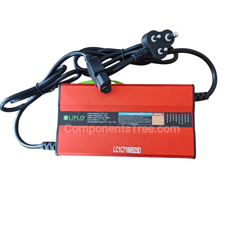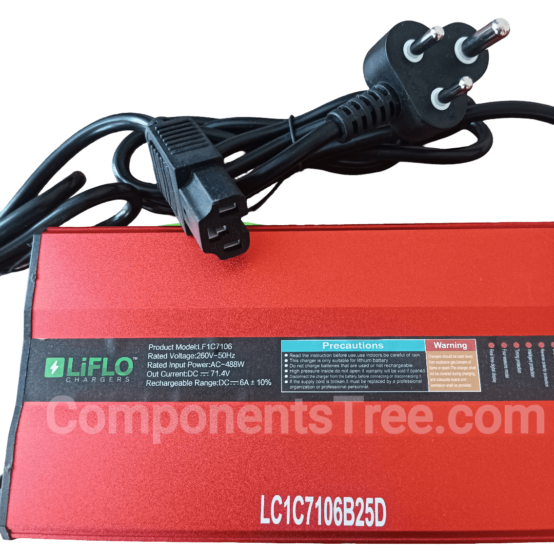 This is a high-performance lithium battery charger designed for 60V electric vehicle battery packs. With a charging current of 6A and a maximum output voltage of 71.4V, it ensures efficient and reliable charging. Built with advanced protection features, it safeguards against over-voltage, over-current, and short-circuit conditions, extending the life of the battery. Suitable for e-bikes, e-scooters, and other electric mobility applications. Cut off Voltage 71.4v.