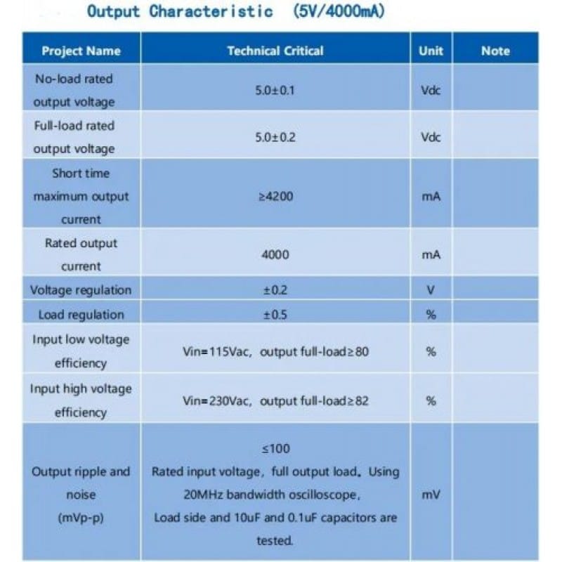 - Regulated 5?V DC output: Up to 20?W (?4?A)