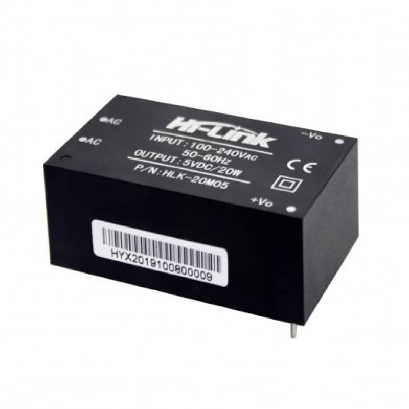 The HLK?20M05 is a compact isolated AC?to?DC switch?mode power supply module that converts standard mains voltage (100–240?V AC) into a regulated 5?V DC output capable of delivering up to 20?W of power. Designed for PCB mounting, it provides a space?efficient alternative to bulky adapters and transformers, making it ideal for powering medium?power 5?V electronic systems directly from the mains. With built?in protections and reliable performance, it suits a wide range of embedded, industrial, and consumer applications.