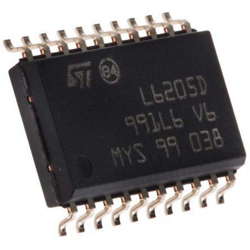 The device operates over a wide supply voltage range and provides built-in protection features such as overcurrent protection, thermal shutdown, and undervoltage lockout, ensuring reliable operation in demanding applications. Available in a surface-mount (SMD) package, the L6205 is suitable for compact and high-performance motor control designs.