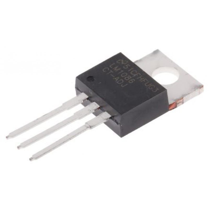 The LM1086CT-ADJ (LM1086 Adjustable) is a high-performance low dropout (LDO) linear voltage regulator capable of delivering up to 1.5A output current with an adjustable output voltage. The output voltage can be set from 1.25V up to 12V (or higher, depending on input voltage) using only two external resistors, making it highly flexible for a wide range of power supply designs.