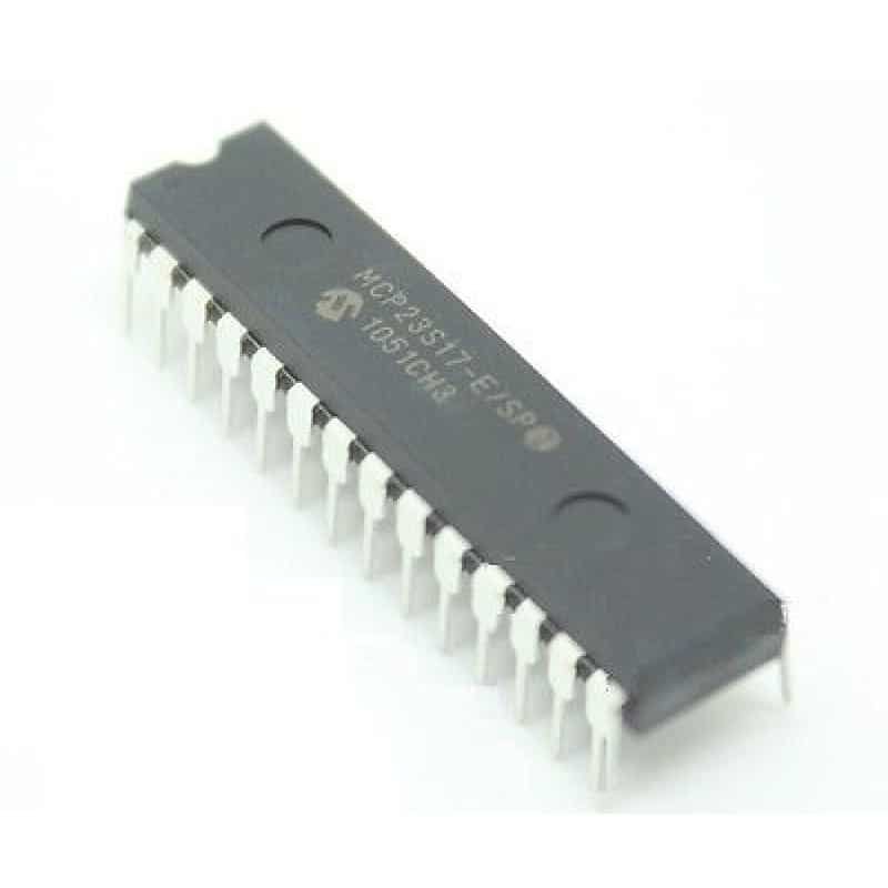 The MCP23S17 is a 16-bit digital input/output (I/O) expander IC that allows a microcontroller to easily increase its number of GPIO pins using an SPI serial interface. It provides two independent 8-bit ports (PORTA and PORTB), each individually configurable as inputs or outputs.