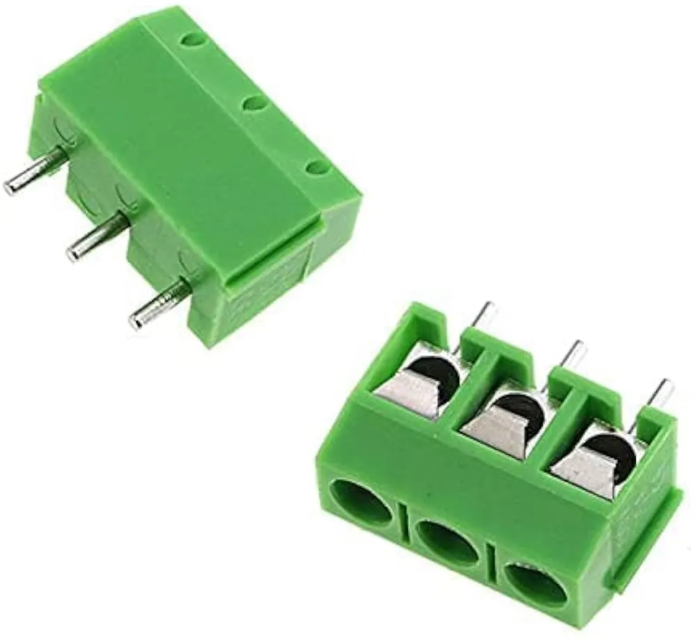 This terminal block features three screw-type connectors, each with a 5mm pitch spacing, making it compatible with a wide range of PCBs. It provides a strong and vibration-resistant connection for both solid and stranded wires, ensuring excellent electrical conductivity and mechanical stability.