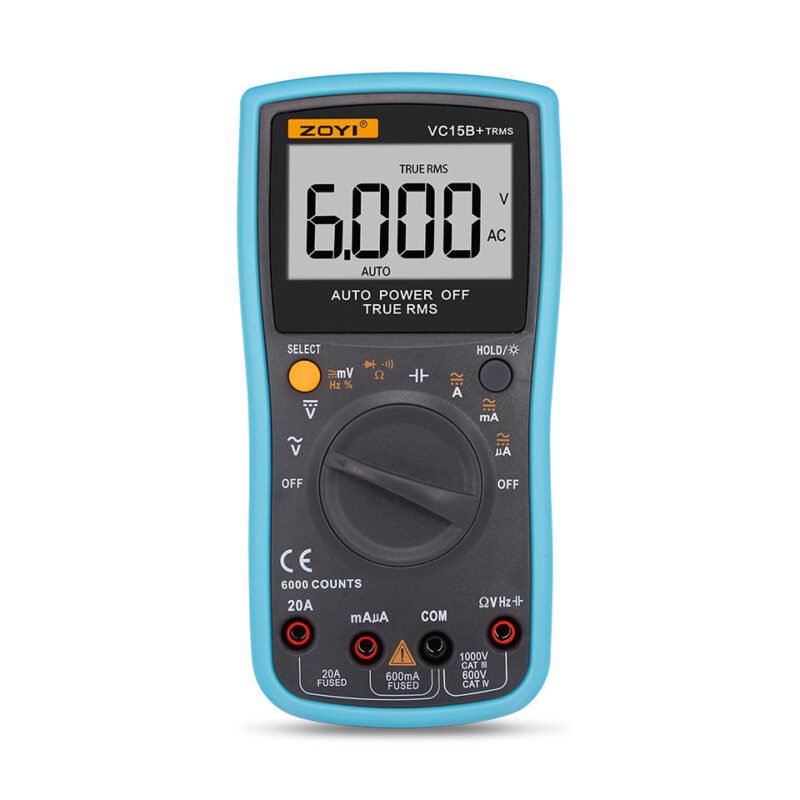ZOYI VC15B+ Digital Multimeter 6000 Counts | Large Display AC/DC Voltage, Current & Resistance Meter
